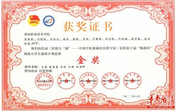 2019级农管班学生易强强等获第十届“挑战杯”湖南大学生创业计划竞赛金奖