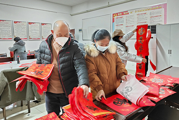 工会常务副主席曾素纯表示,今年送春联活动由于疫情原因,不现场领取,由各个分工会主席提前将人员名单报送,写好后再分发到位。通过书写春联和福字的方式,向广大教职工职送去新春祝福,拉近了与教职工的距离,切实有效发挥工会组织的桥梁纽带作用,让广大教职工切实感受到工会的温暖。(姜帅)