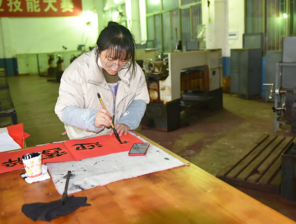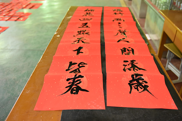 活动分别在综合楼7楼、9楼,机电学院实训工厂分三个场地同步进行。5位老师或挥毫泼墨,或龙飞凤舞、潇洒飘逸,或刚劲峻拔,方润整齐,将美好的祝愿化作一幅幅平安和谐、吉祥如意的春联和“福”字,为即将到来的春节增添了浓浓的喜庆氛围。