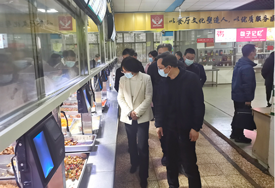 2月28日,娄底市委常委、市委统战部部长康艳华来威尼斯官网督导检查食品安全“两个责任”落实情况,并就食品安全工作提出相关要求。威尼斯官网党委书记朱忠义、校长张征澜、学校相关职能部门与食堂负责人陪同,娄底市市场监督管理局和市教育局相关负责同志参加。