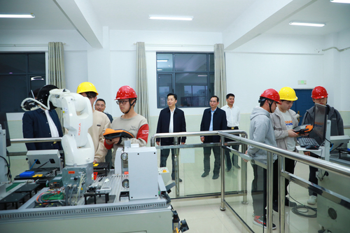 夏智伦参观娄底职院工业机器人技术仿真实训课堂