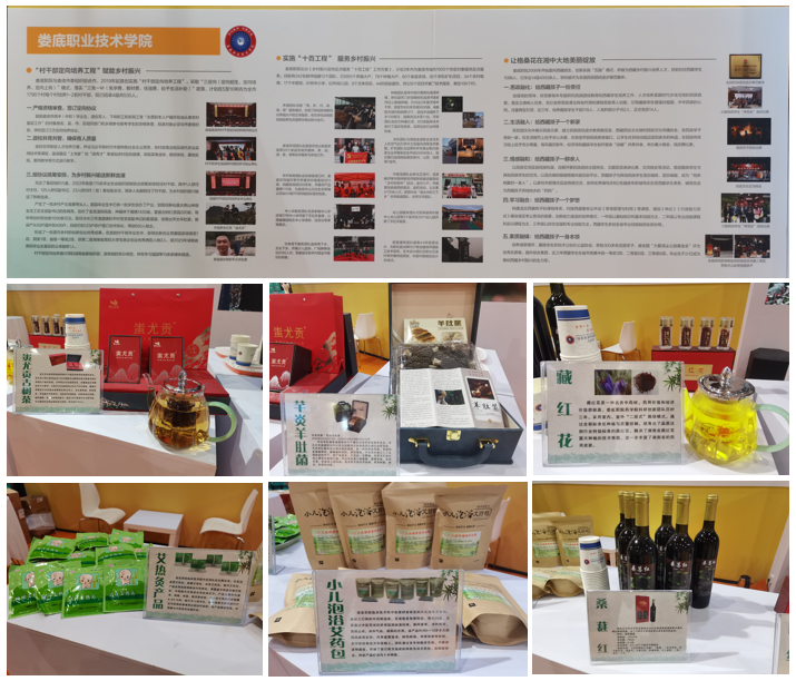 在展览活动现场,学校展示了3个乡村振兴典型案例、1个主题展览视频和2个专题视频,以及桑葚红、蚩尤贡茶,芊炎羊肚菌、藏红花、艾热灸、泡浴艾药包等6个师生共同研发的产品实物。学校展区吸引了参展领导、兄弟院校师生和市民等驻足观赏品鉴,对学校服务乡村振兴所取得的成果纷纷表示赞许。