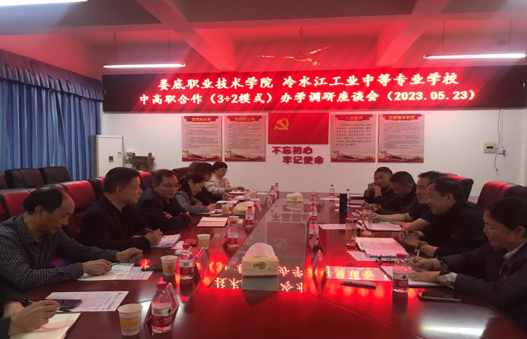 5月23日下午,由校长张征澜带队,副校长游新娥、相关职能部门及二级学院负责人一行8人赴冷水江工业中等专业学校调研,双方围绕中高职衔接项目建设、区域职业教育高质量发展、娄底职业教育集团建设等方面开展座谈交流。冷水江工业中等专业学校校长刘伟辉、副校长康雄、相关职能部门及专业负责人参加座谈。