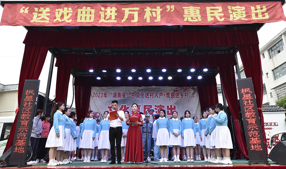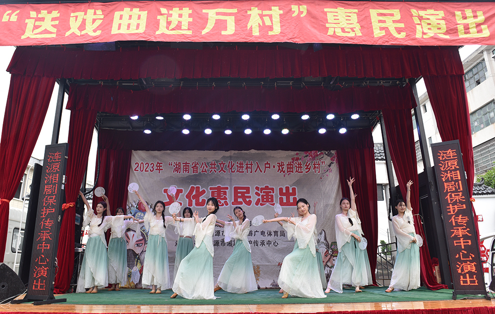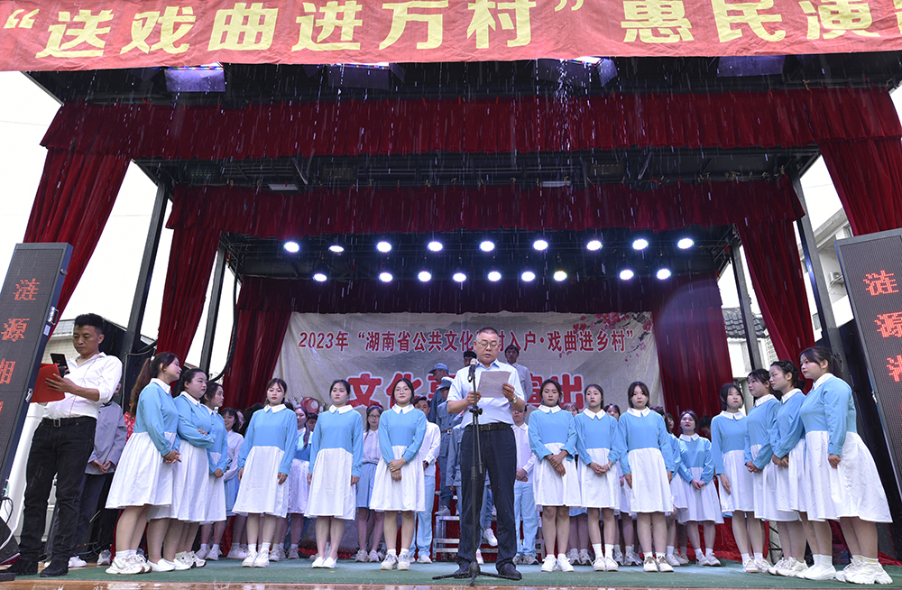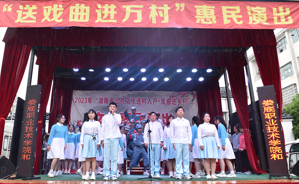 仪式结束后,涟源湘剧院和威尼斯官网学生志愿者以独唱、器乐、舞蹈、小品、笛子、萨克斯、花鼓戏等形式为现场观众演出了《青春中国》、《火红的萨日朗》、《玛尼情歌》等十二个剧目。演员们惟妙惟肖的表演获得了观众们的喝彩,也让群众感受了文艺作品展现身边真实故事和中国传统文化的魅力。
