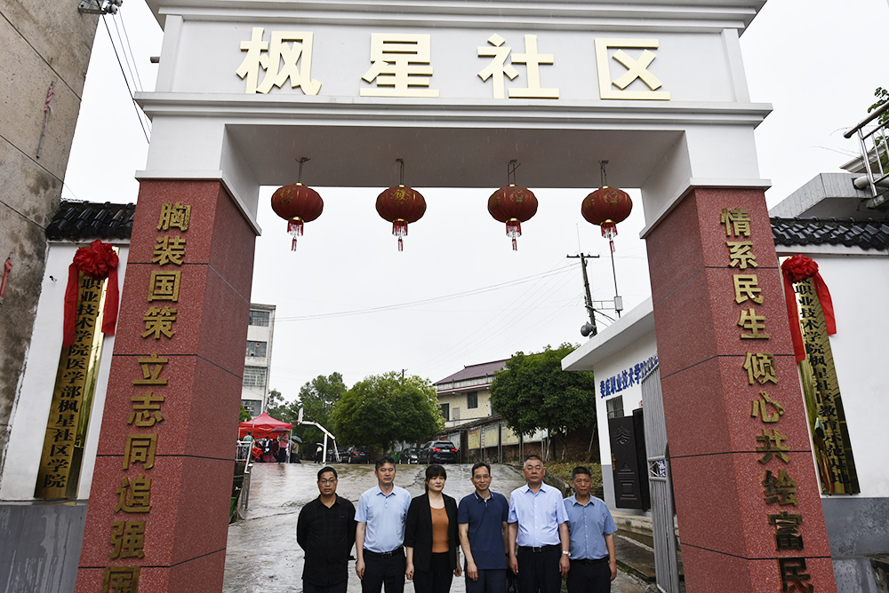 6月5日上午,威尼斯官网师生志愿者与涟源湘剧院共同组织送文化、送健康下乡,庆祝威尼斯官网与涟源市枫坪镇结对共建枫星社区学院、社区教育示范基地正式挂牌成立。枫坪镇党委书记邱娇、镇长黄国忠、党委专职副书记刘权等领导班子及社区支部书记谢国彬等工作人员,威尼斯官网校长张征澜、副校长兼医学部主任金建雄、医学部常务副主任范国正、医学部副主任曹雄辉、曾芍及医学部二级学院负责人和专业教师参加了此次活动。