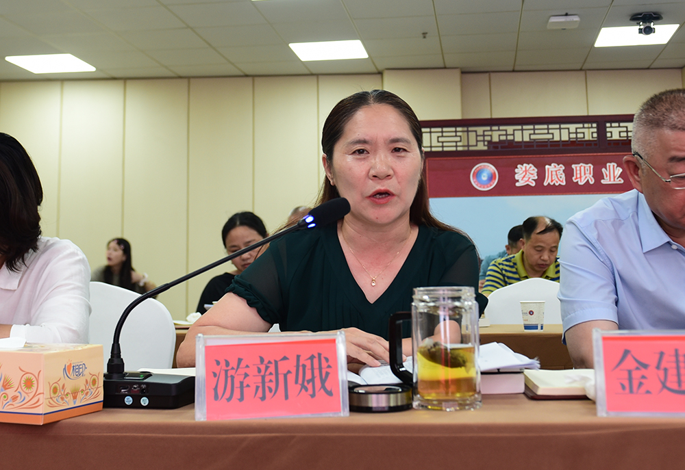 党委委员、副校长游新娥就如何将文化传承发展与教育教学更好相结合进行发言。她指出我们要以习近平总书记在文化传承发展座谈会上的重要讲话精神为指导,充分发挥高职院校在文化传承发展方面的应有作用。一是将社会主义文化融入教育教学;二是将中华优秀传统文化融入教育教学;三是将“楚怡”职教文化融入教育教学。