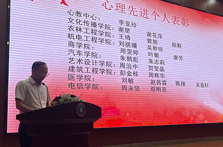 随后,领导们分别为2022-2023年度先进心理健康工作者、优秀心理委员、微电影获奖者、演讲比赛获奖者颁奖。
