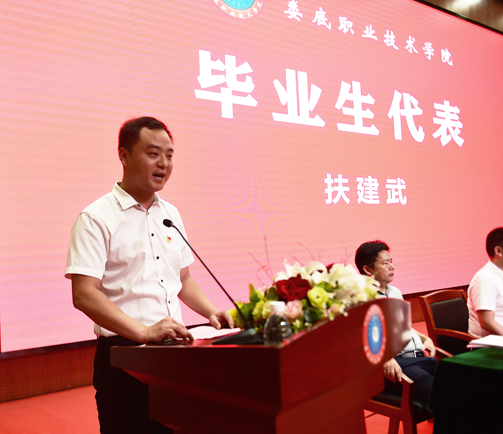 毕业生集体宣誓,表示将胸怀使命,脚踏实地,为娄底乡村振兴奉献力量。