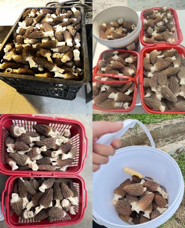 刘乾乾夫妇两人最开始尝试种植了10亩羊肚菌,经过80余天,试种的羊肚菌长势良好,陆续出菌,最后每亩产量达400多斤,供不应求。第一年种植大获成功后,刘乾乾决定扩大羊肚菌种植面积,到2022年芊炎种养专业合作社的羊肚菌种植面积扩大到了500亩。2023年刘乾乾更是通过羊肚菌-水稻轮作技术模式示范种植300余亩,平均每亩收获新鲜羊肚菌600多斤、优质稻谷1600多斤,目前这种模式冷水江正在大力推广中。
