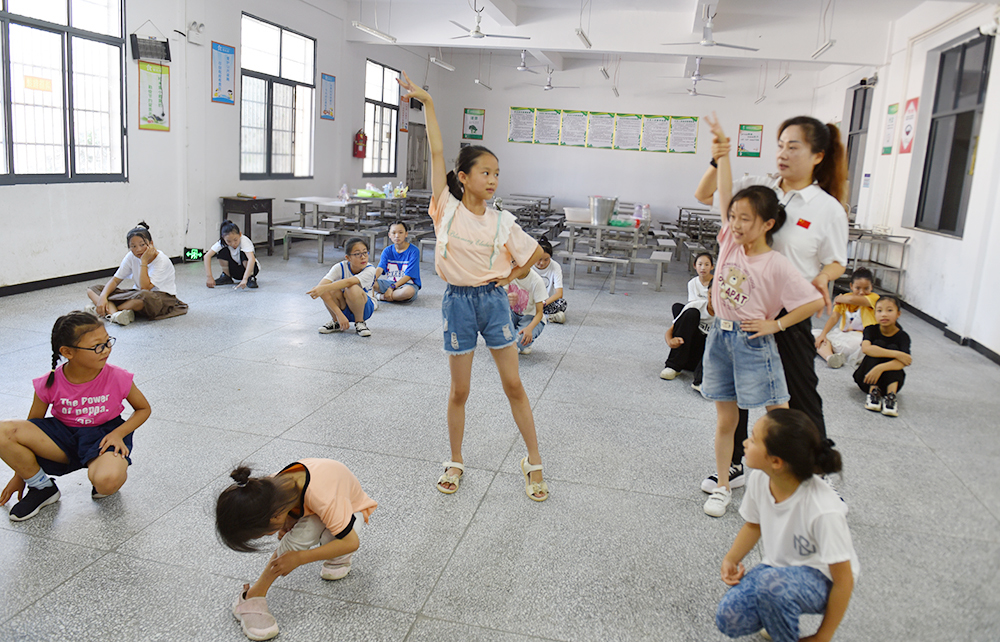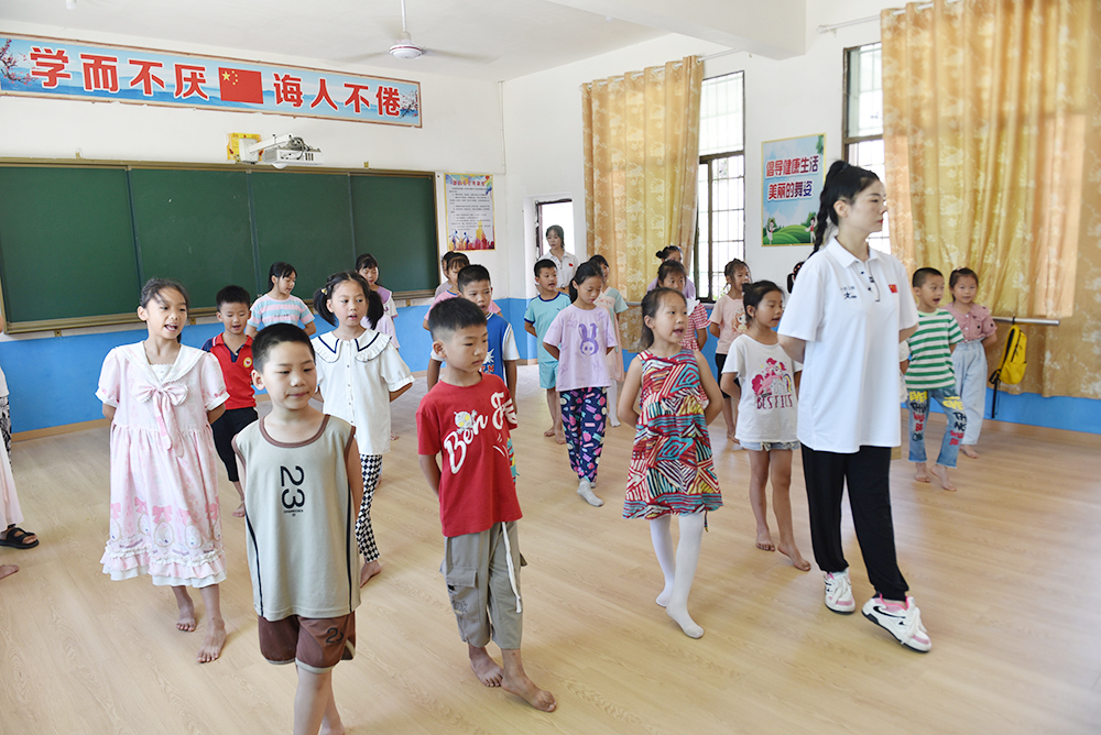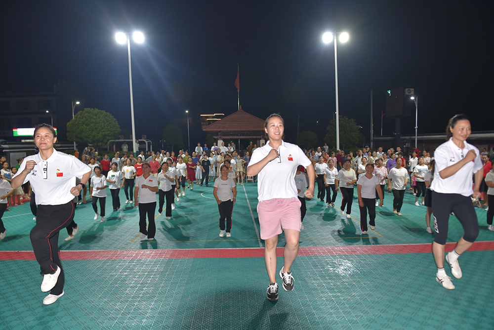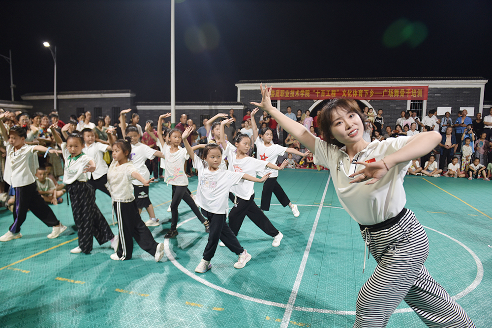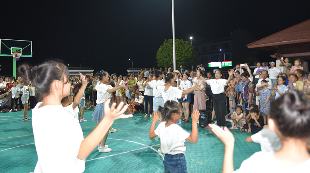 7月14日在双峰县井字镇黄巢村文化广场,随着一场场篮球友谊赛、少儿拉丁舞、中老年广场舞等汇报表演的结束,公共课教学部组织20余名教师开展的“十百工程”定向定点服务乡村振兴“送文化、体育下乡”实践活动圆满划下句号。“我学会了好几个广场舞,我家男娃娃参加了中考体育培训,女娃娃刚刚跳了那个少儿拉丁舞,看着相当不错。”当地村民曾阿嫂满脸骄傲地告诉记者。