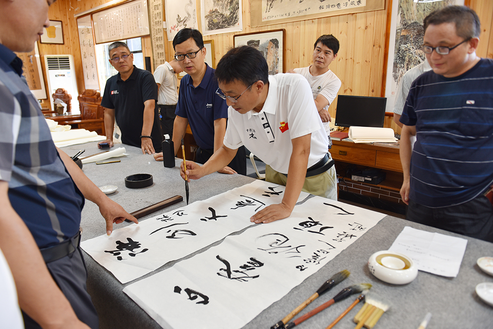 在增峰村望岳书画院,罗华斌老师主讲了一堂书法书画讲座,并现场挥毫,与井字镇文联相关协会会员交流切磋。