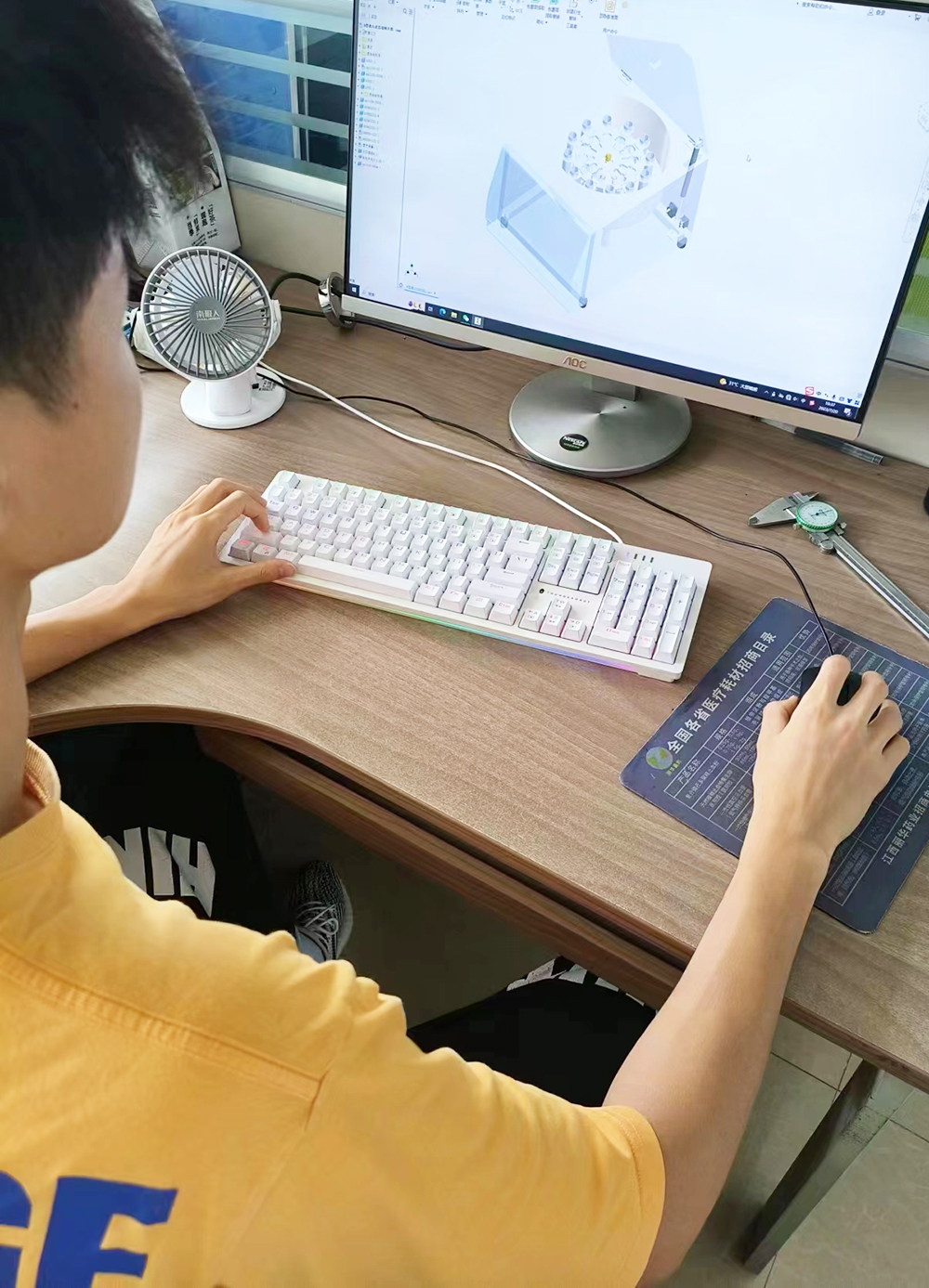 2017年入学威尼斯官网机电工程学院的黄辉经过一段时间的学习,对CAD机械设计产生浓厚的兴趣。正是这份发自内心的热爱激励着他不断前进。入学第二学期,他就报名参加了学院CAD机械设计竞赛队纳新选拔,经过专业知识考核和面试,顺利进入了竞赛精英班。之后他的每一天都忙碌而充实,内心一直有个声音在对自己说:“我一定要站上省级竞技舞台,为娄职争光。”从此希望的种子渐渐在汗水的浇灌下开始萌芽。