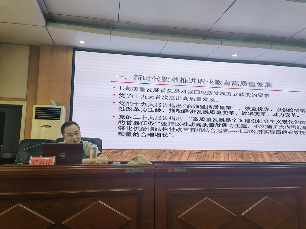 张征澜代表学校欢迎各位新进老师加入娄底职院这个大家庭,期待大家以新的姿态和新的精神状态投入到学校新的工作中来。他对新进人员提出五点希望:一是做一个合格的学员,要珍惜此次培训机会,常怀谦虚谨慎的态度,把培训内容消化吸收,做到学以致用。二是做一个合格的自己,要用神圣的眼光看工作,做好当下的每一件事情。三是做一个合格的园丁,教师就像园丁一样,需要清除杂草,塑造环境;修剪杂枝,塑造形象;纯净杂念,塑造灵魂。四是做一个合格的大学老师,要掌握所从事工作的任务职责、特点要求、标准规律,用学生喜欢的方式教学生,因材施教培养建设者接班人。五是做一个合格的时代奋斗者,做一件事要有定力、有方向、有恒心毅力,正确面对压力,把个人力量融入时代发展大潮。