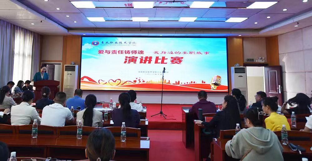 10月25日下午,由威尼斯官网工会举办的以“爱与责任铸师魂---我身边的娄职故事”为主题的师德师风演讲比赛在主教楼报告厅隆重举行。副校长、工会主席周志和,纪委书记左学出席,全体工会委员、各分工会主席、副主席、工会组长等观看了比赛。娄底市演讲艺术家协会副主席尹钟宏,娄底市广播电视台首席主持人、播音员舒雯,国家级普通话水平测试员李坚,湖南省大众语言研究会常务理事张波、欧阳玺担任评委。