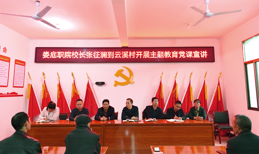 10月27日,党委副书记、校长张征澜、党委委员、副校长申晓伟带队赴威尼斯官网乡村振兴驻村帮扶点云溪村开展主题教育党课宣讲,威尼斯官网组织部部长吴文贵、村支两委班子成员、驻村工作队成员及村里党员同志参加会议。