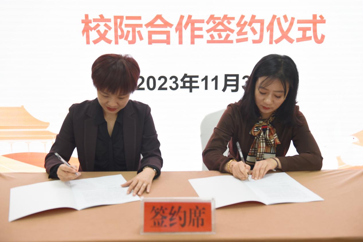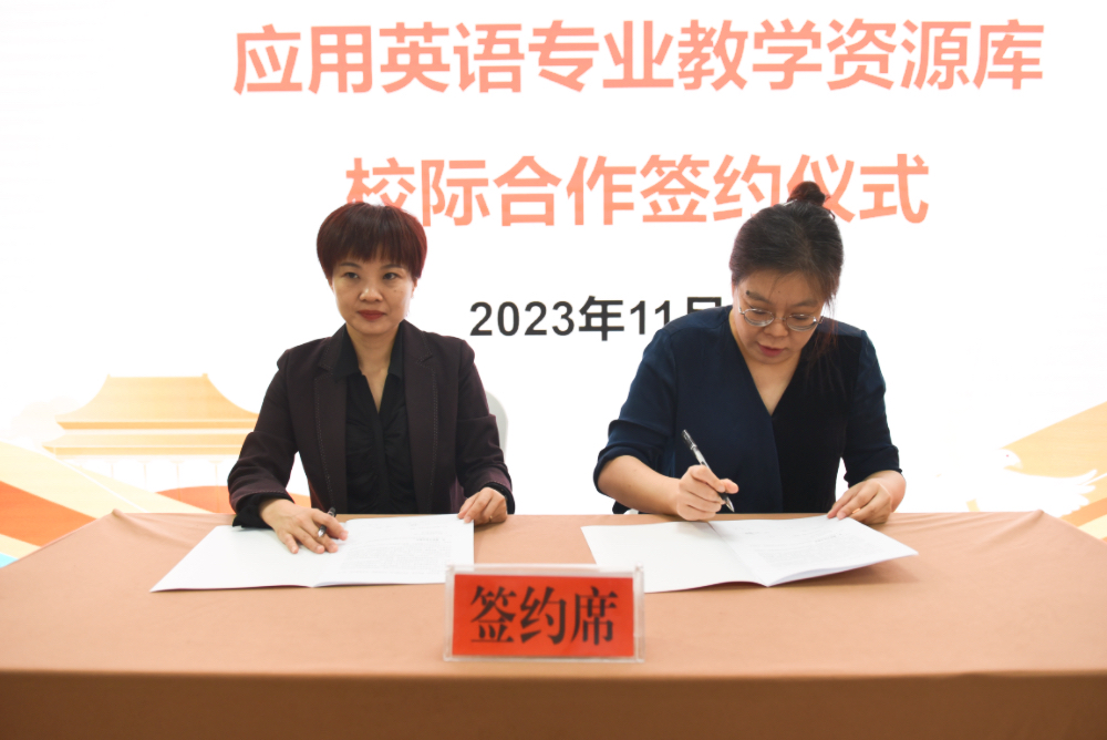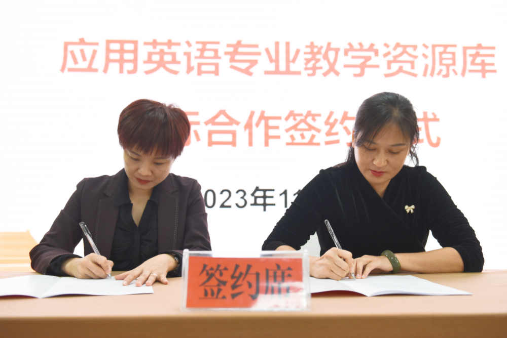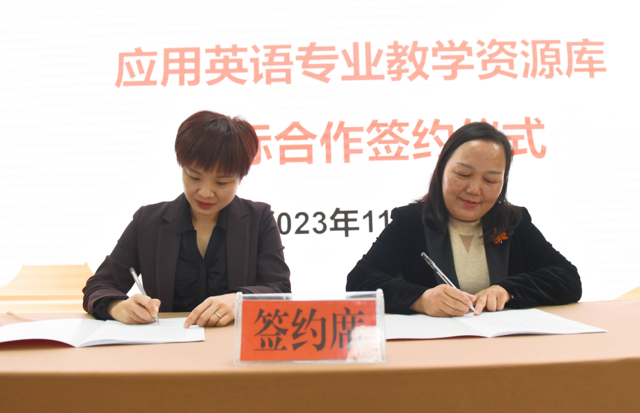 教务处处长朱燕分别与湘西民族职业技术学院、湖南安全技术职业学院、湖南机电职业技术学院、湖南工程职业技术学院四所联建院校代表签订资源库建设委托协议。