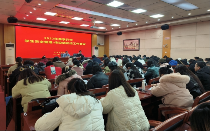 会上,肖靓宣读了《关于做好2023年春季开学学生安全管理工作的通知》《关于做好2023年春季开学学生传染病防控工作的通知》等会议文件,切实做好学校疫情防控新阶段的相关管理工作,严格落实晨(午)检制度,做好学生健康监测,建立健康档案,实行学生健康“日报告”“零报告”制度,落实因病缺勤追踪登记制度,做好学生的因病应急处置。精心策划以防疫知识、心理健康和生命健康教育为主要内容的开学第一课,开展全校师生员工的疫情防控教育,同时做好学生宿舍环境卫生清扫和消毒工作,切实维护师生身心健康和生命安全。